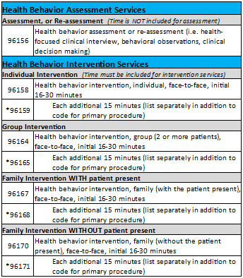 The coding here for use by non-physician health care professionals, including psychologists, LCSW, family therapists & mental health counselors. These codes recognize value in the collaborative roles taken in caring for our patients.
